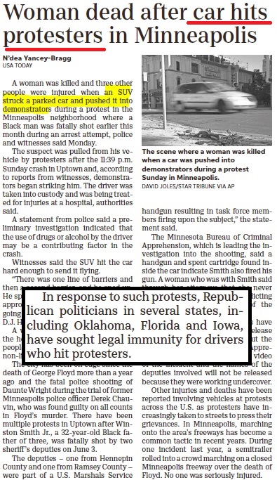 Just centering drivers and not erasing them in malignantly intentional acts and in careless acts is possible. The NY Times uses proper grammatical subjects and agents in discussing the Minneapolis assault.