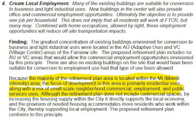 The proposal takes the "mixed intensity" concept, empties it, and offers a conventional housing subdivision. The "vision" part of the Fairview Master Plan is absent.